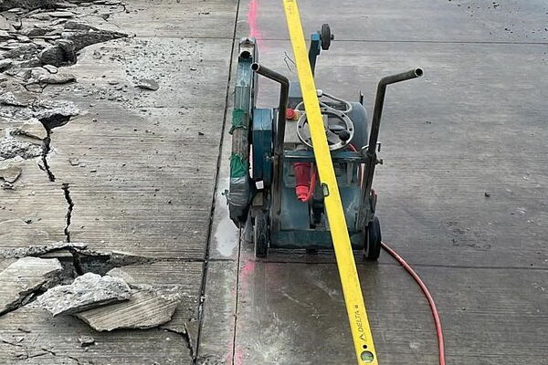 Geradlinige Abbruchkante am Flughafen Düsseldorf mit 30 cm Schnitttiefe. Präzise Ausführung mittels Bodensäge
