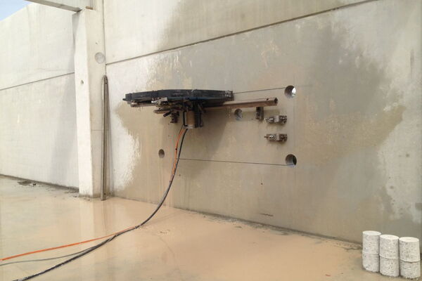 Hier wurden im Rahmen eines Umbaues an einer Industriehalle großvolumige Stahlbetonbauteile mittels Seilsägen entfernt und entsorgt.