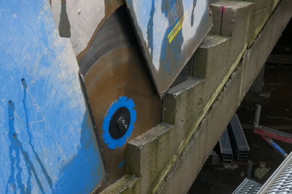 Hier wurde eine Stahlbetontreppenanlage mittels Wandsägeverfahren zur Verringerung der Treppenbreite eingekürzt.