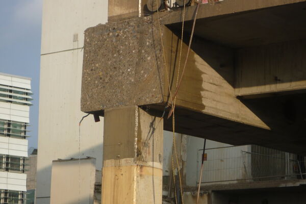 Präzise Bohr- und Sägearbeiten auf dem Gelände der Messe Düsseldorf: Ein Stahlbetonbalken wurde mittels Betonbohr- und Sägeverfahren eingekürzt, demontiert und entsorgt.