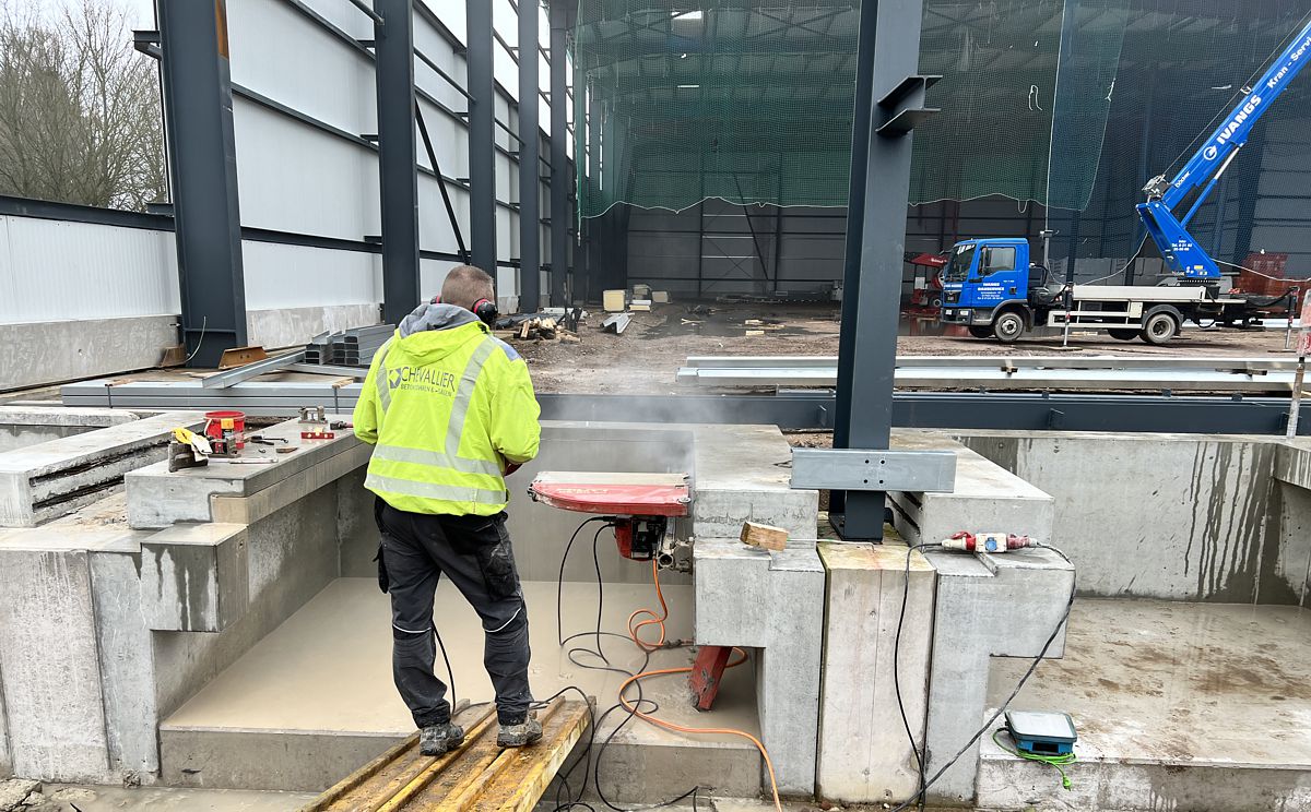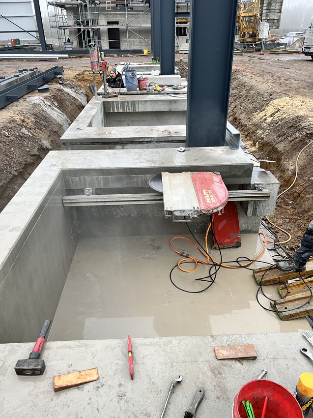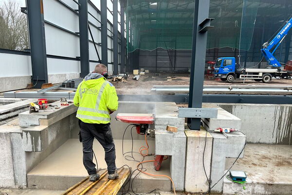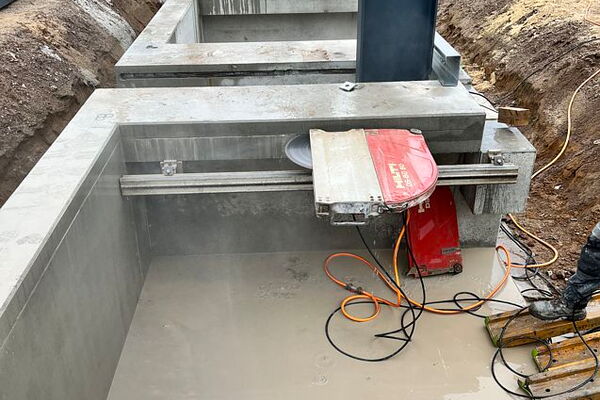 Bei einem Neubau wurden die Öffnungsmaße der LKW-Verladerampe angepasst. Die Arbeiten erfolgten präzise und effizient mittels Wandsägeverfahren.